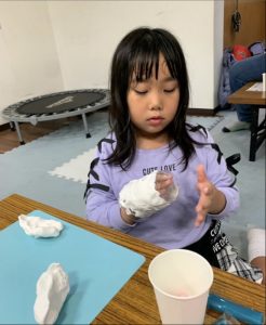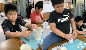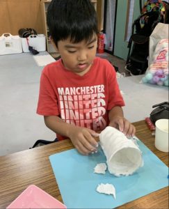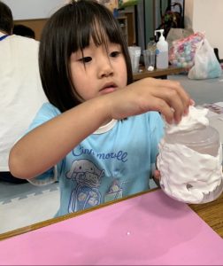 プラスチックのコップに紙粘土を貼り、